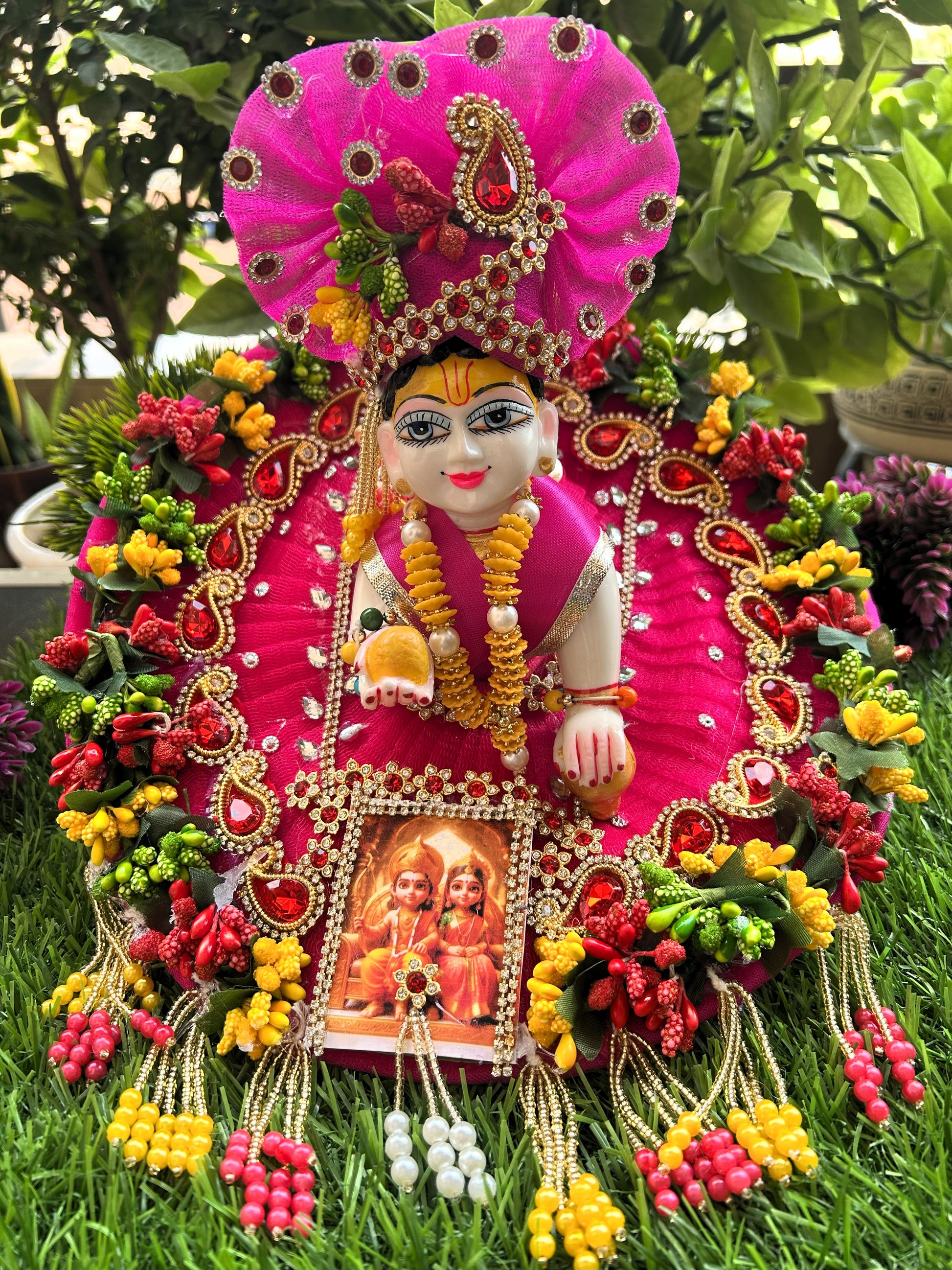 The divine accessories combo (mukut, mala and bansuri) is perfect. My Laddu Gopal looks complete now.