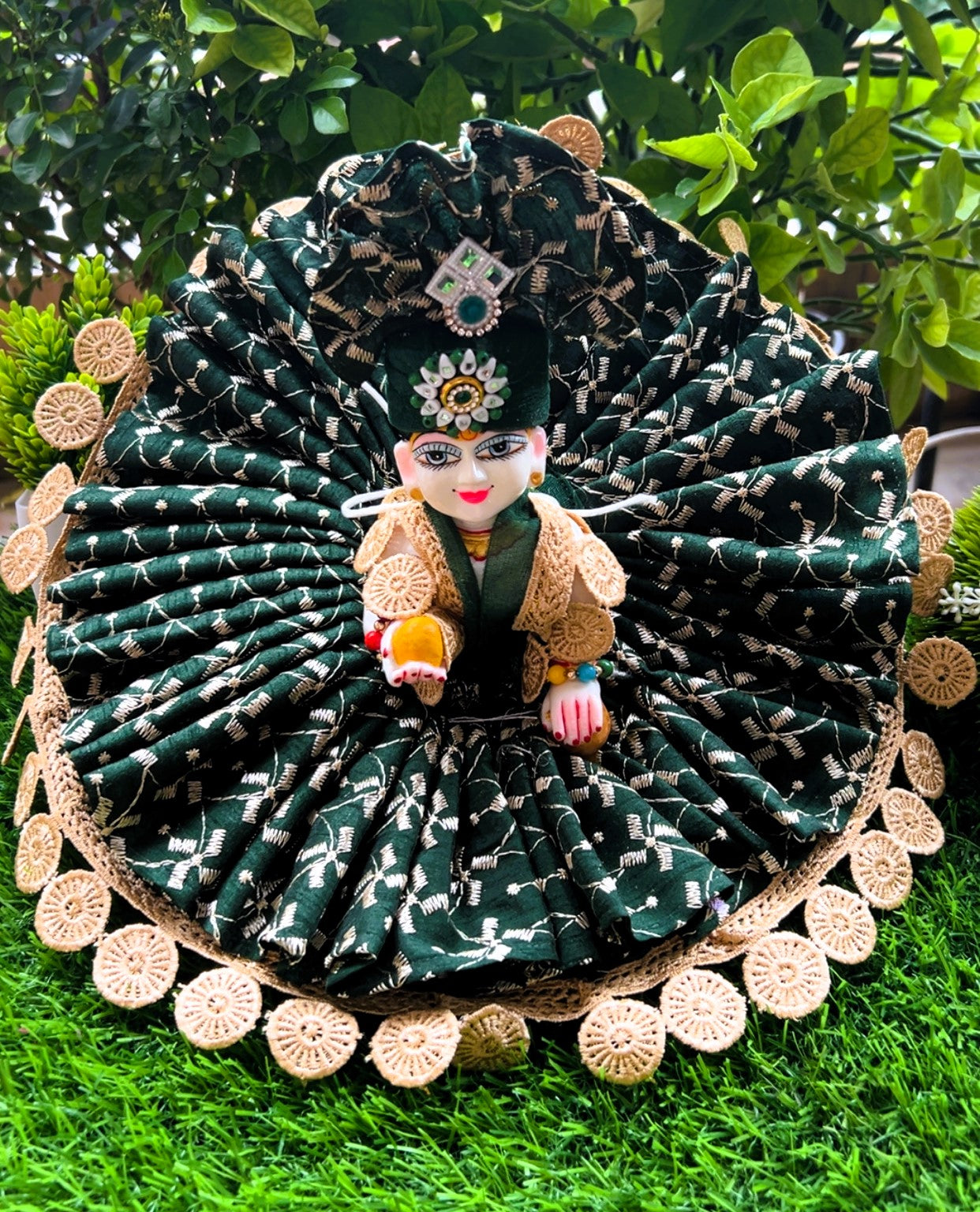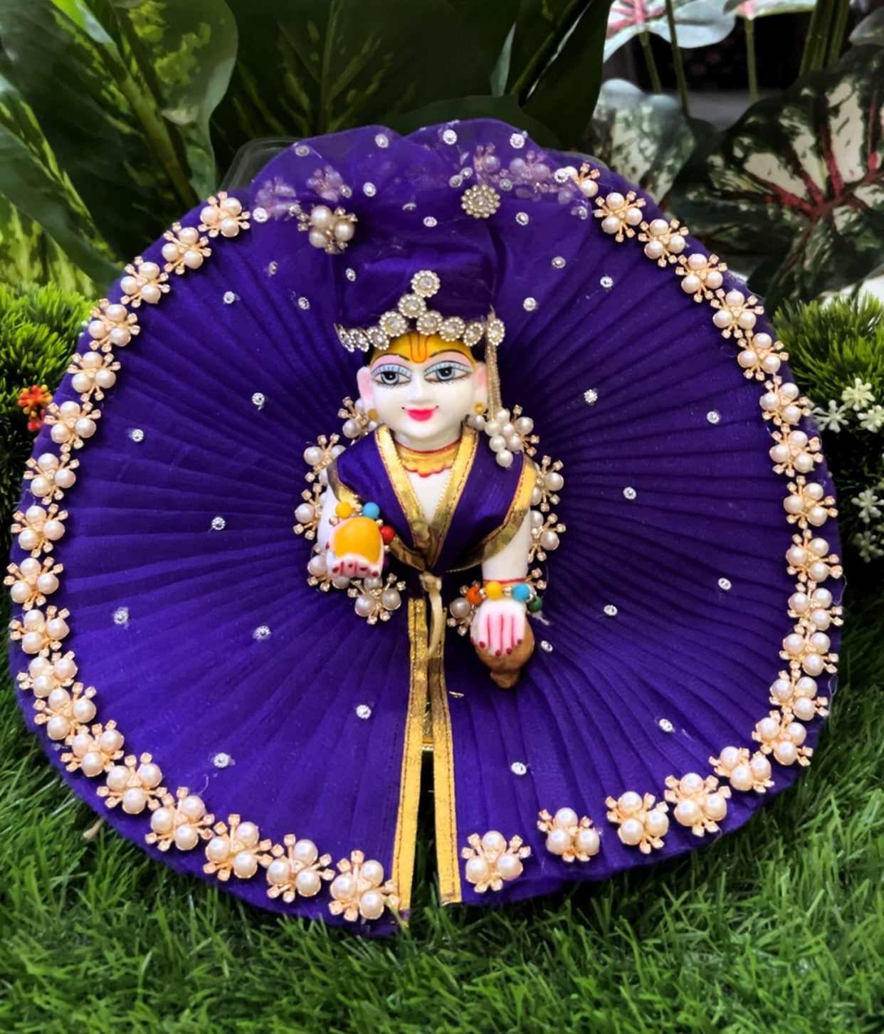 The divine accessories combo (mukut, mala and bansuri) is perfect. My Laddu Gopal looks complete now.